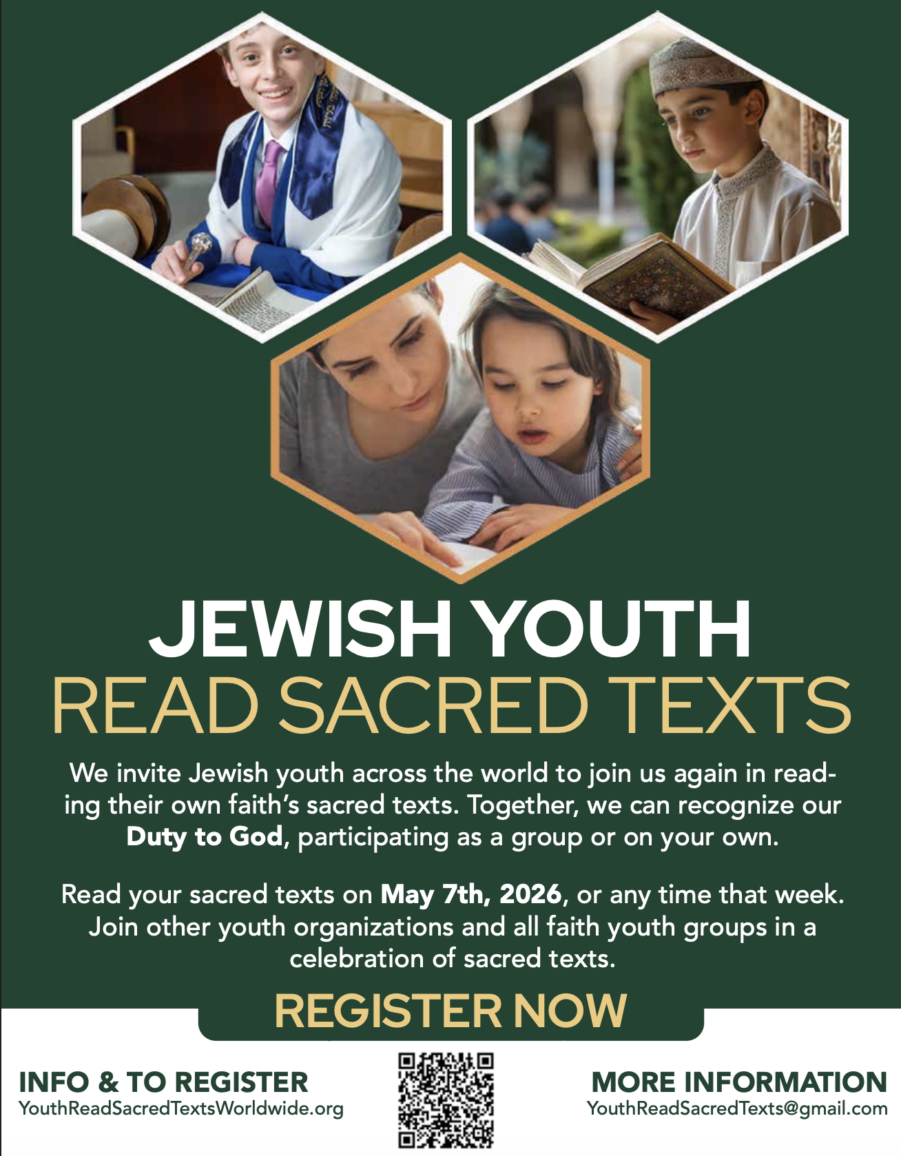 May 7, 2026 – Jewish Scouts Read Sacred Texts – We invite Jewish youth across the world to join us again in reading their own faith’s sacred texts. Together, we can recognize our Duty to God, participating as a group or on your own. Read your sacred texts on May 7th, 2026, or any time that week. Join other youth organizations and all faith youth groups in a celebration of sacred texts.